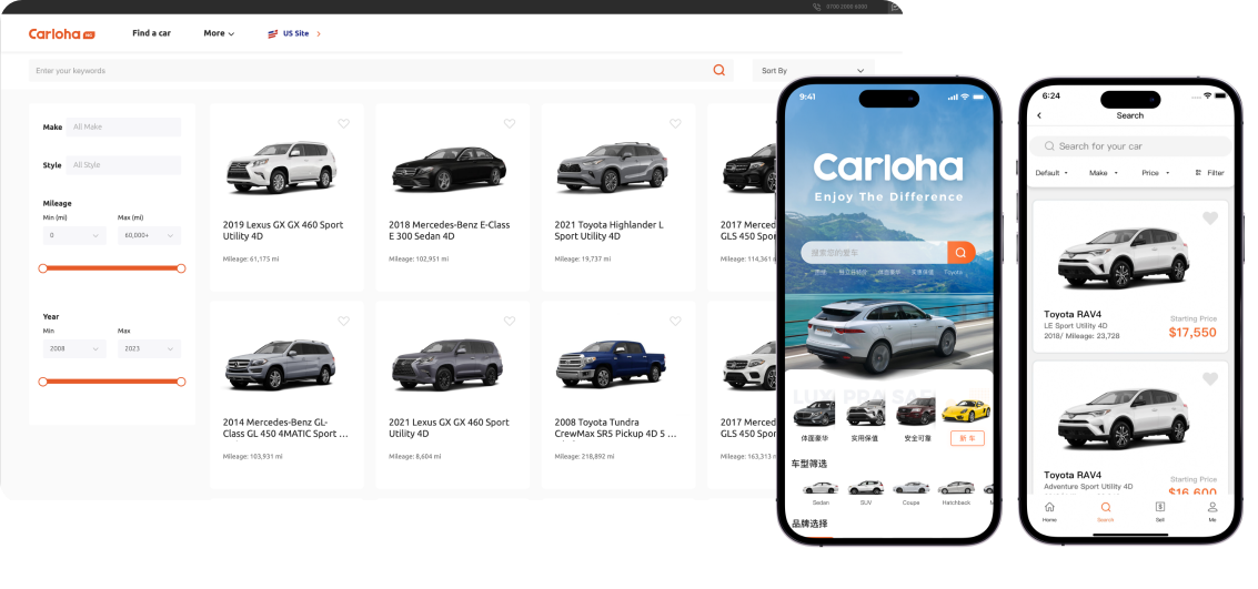 It includes US main website, mobile website, mobile APP, WeChat Mini-Program. Online business can cover all 48 contiguous states in the US.